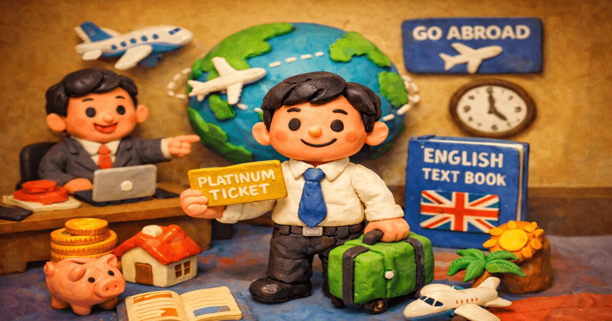 サラリーマンが資産形成を最速で進めるための「プラチナチケット」、それが海外赴任です。 今回は、海外赴任がどれほど資産形成に有利かというリアルな資産推移と、英語苦手キャラ(海外赴任直前はTOEIC 395点)だった私がどうやってその切符を掴んだのか、具体的な学習ツールを紹介します。